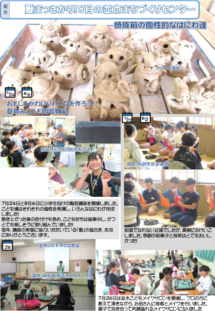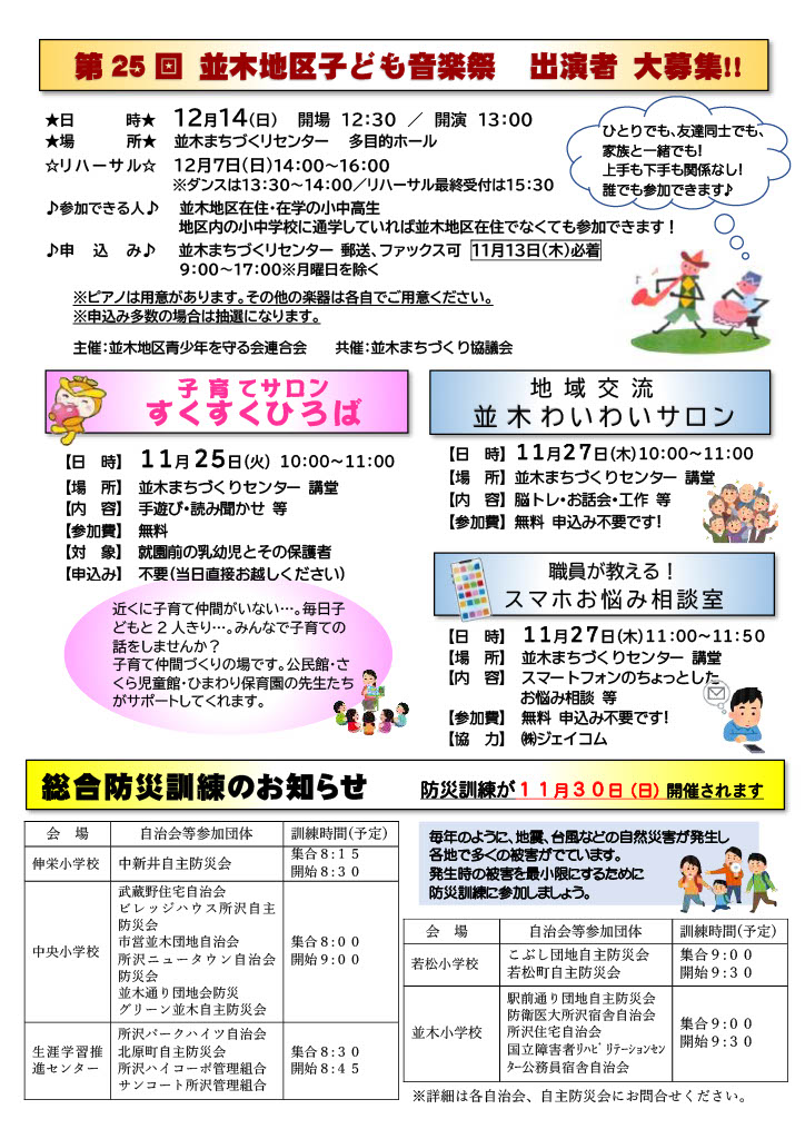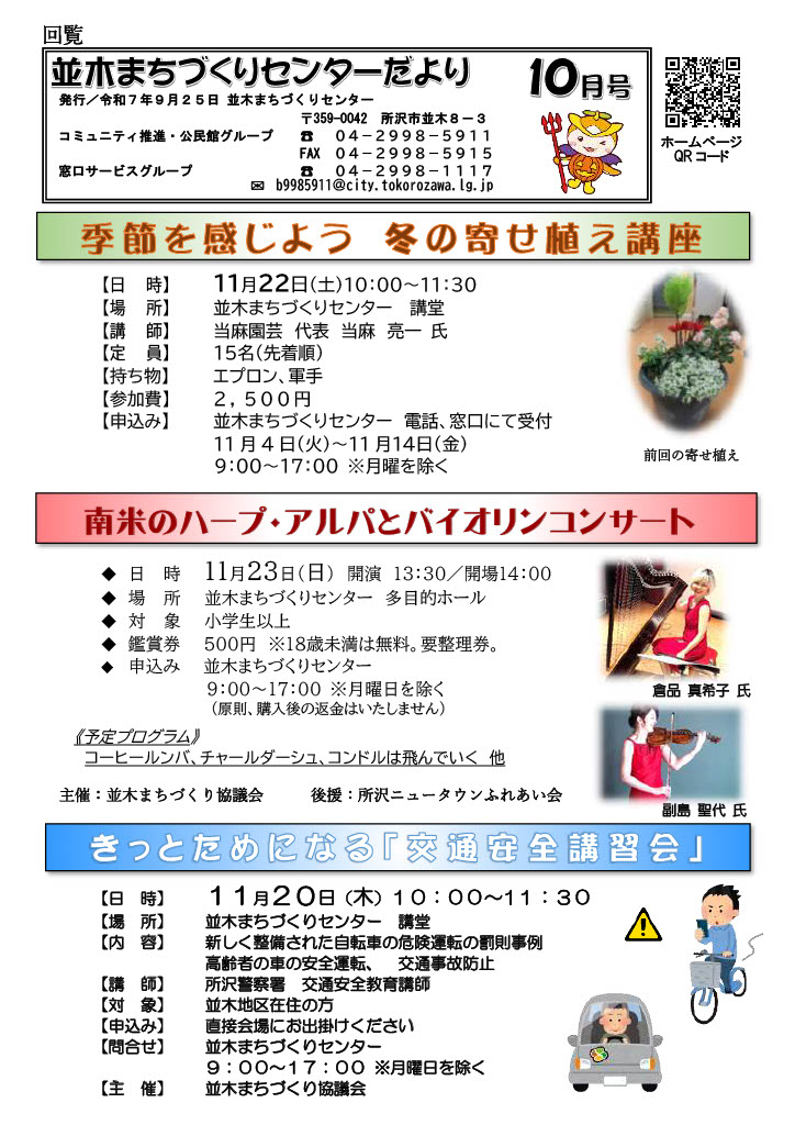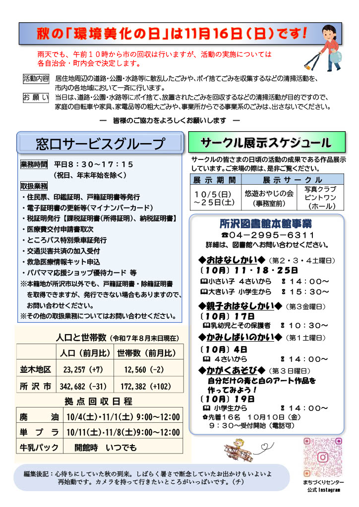 並木まちづくりセンターだより10月号が届きましたので、お届けします。