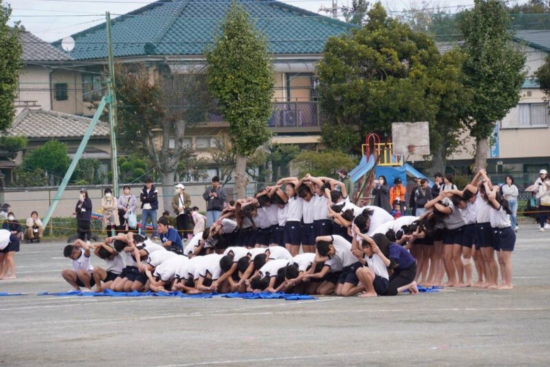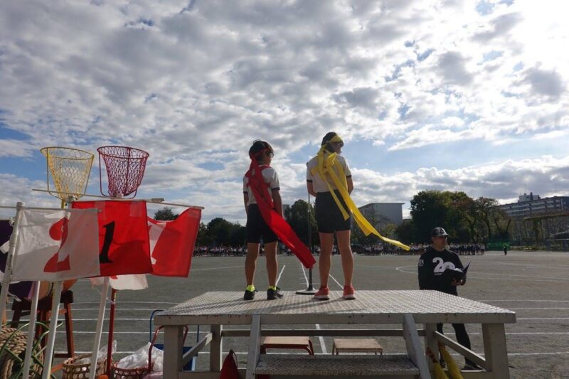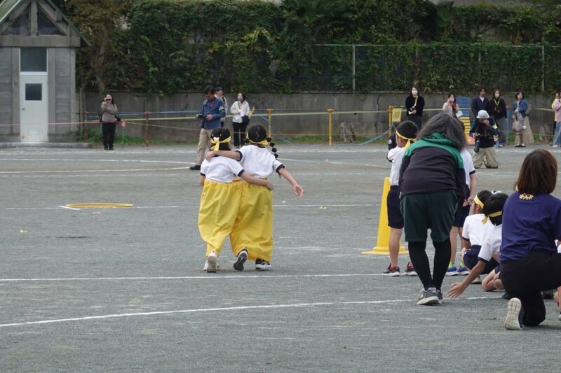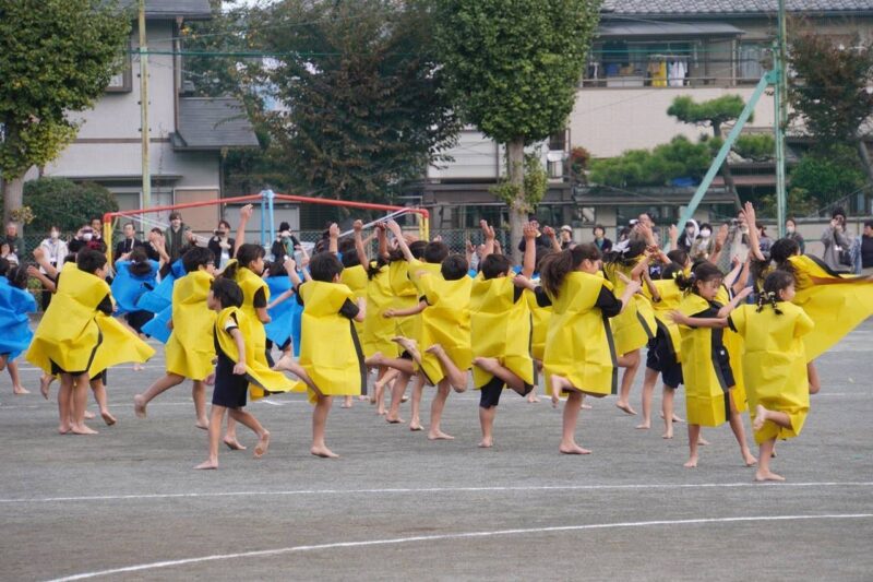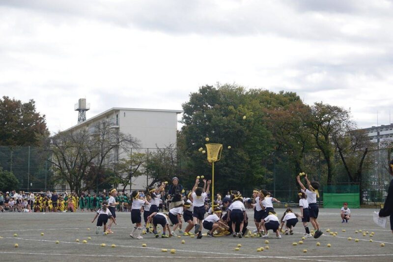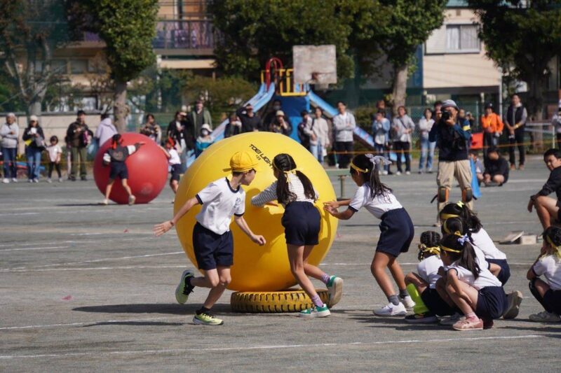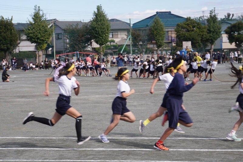 可愛らしい1年生から頼もしい6年生までの学年毎の徒競走と競技は、生徒のみなさんの1年1年の成長が感じられます。各競技は走りながらもいろいろな技が盛り込まれていて、作戦や結束力に見応えがありました。特に1年生のチェッコリ玉入れ、2年生のデカパンリレーは名物競技になっているようです。本部テント内では可愛い1年生に合わせて御菩薩池学校長はじめ皆さん方もチェッコリダンスにノリノリ。それを見ている私たちまで楽しくなりました。