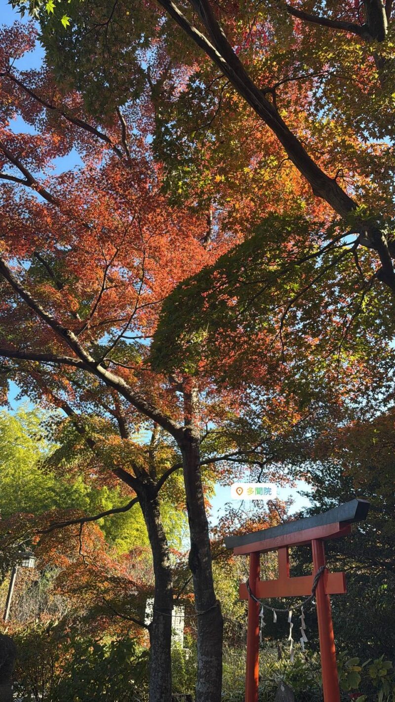 多門院は、境内を包むように広がるカエデやイチョウが美しく色づき、落ち着いた雰囲気の中で紅葉を楽しめる名所として知られています。参道を歩くと、足元に広がる赤や黄色の落ち葉が彩りを添え、思わず足を止めたくなる光景が続きます。本堂周辺は特に色づきが鮮やかで、写真愛好家がカメラを構える姿もすくなくありません。静けさの中に秋の深まりを感じられる、心安らぐスポットです。