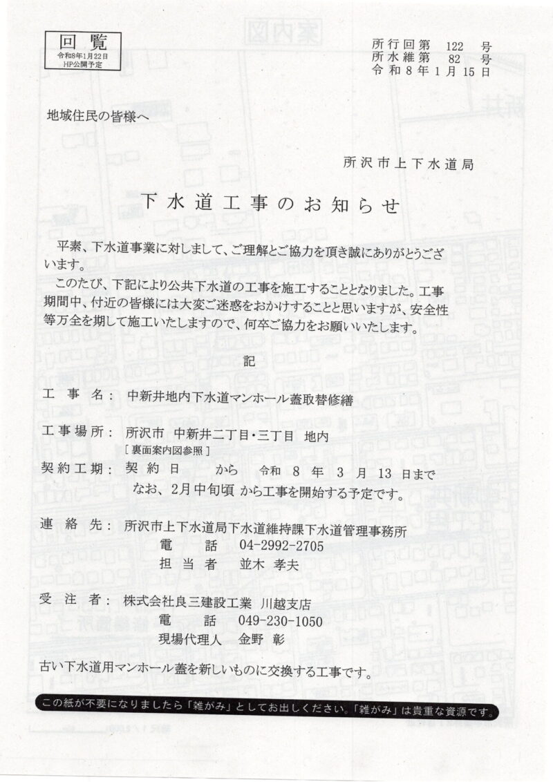 下水道工事のお知らせ