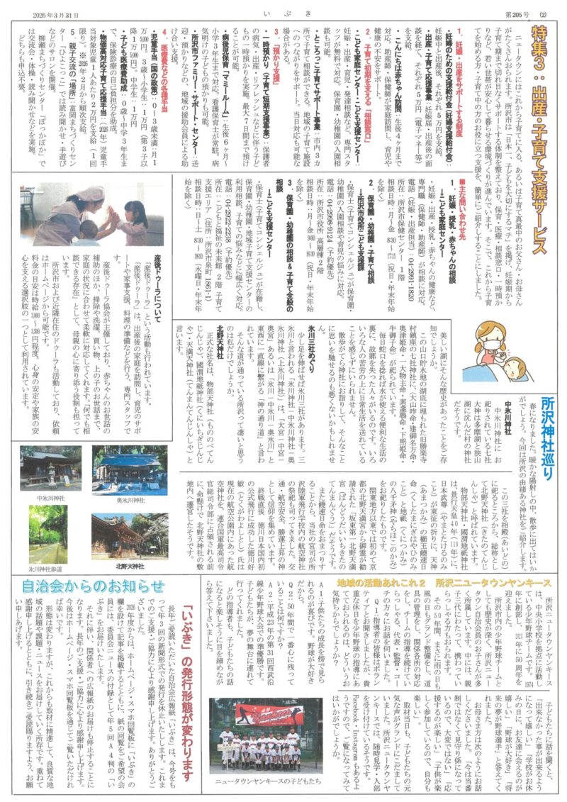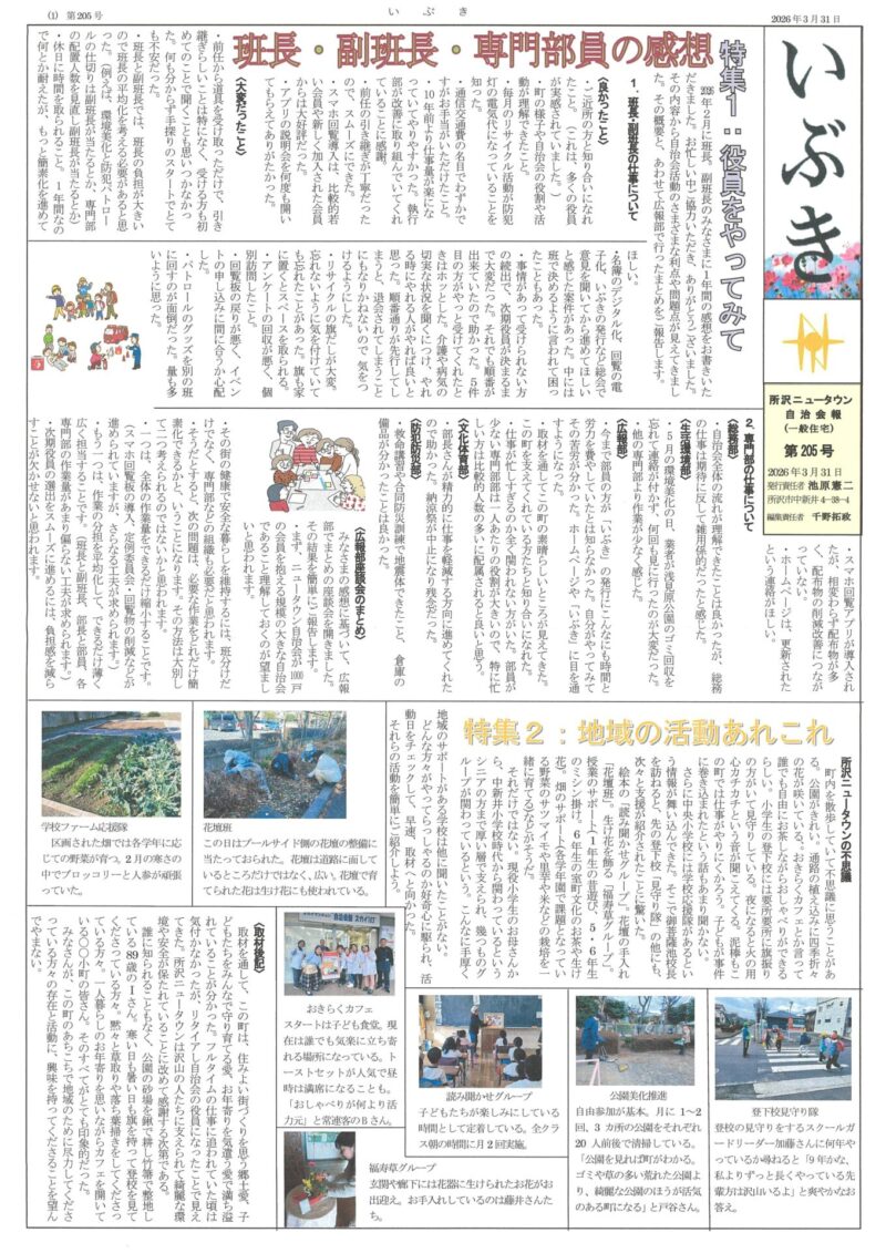 長年ご愛読いただいた自治会広報紙「いぶき」は、今号をもって年3回の新聞形式での発行を休止いたしします。これまでのご支援・ご協力に心より感謝申し上げます。ありがとうございました。
